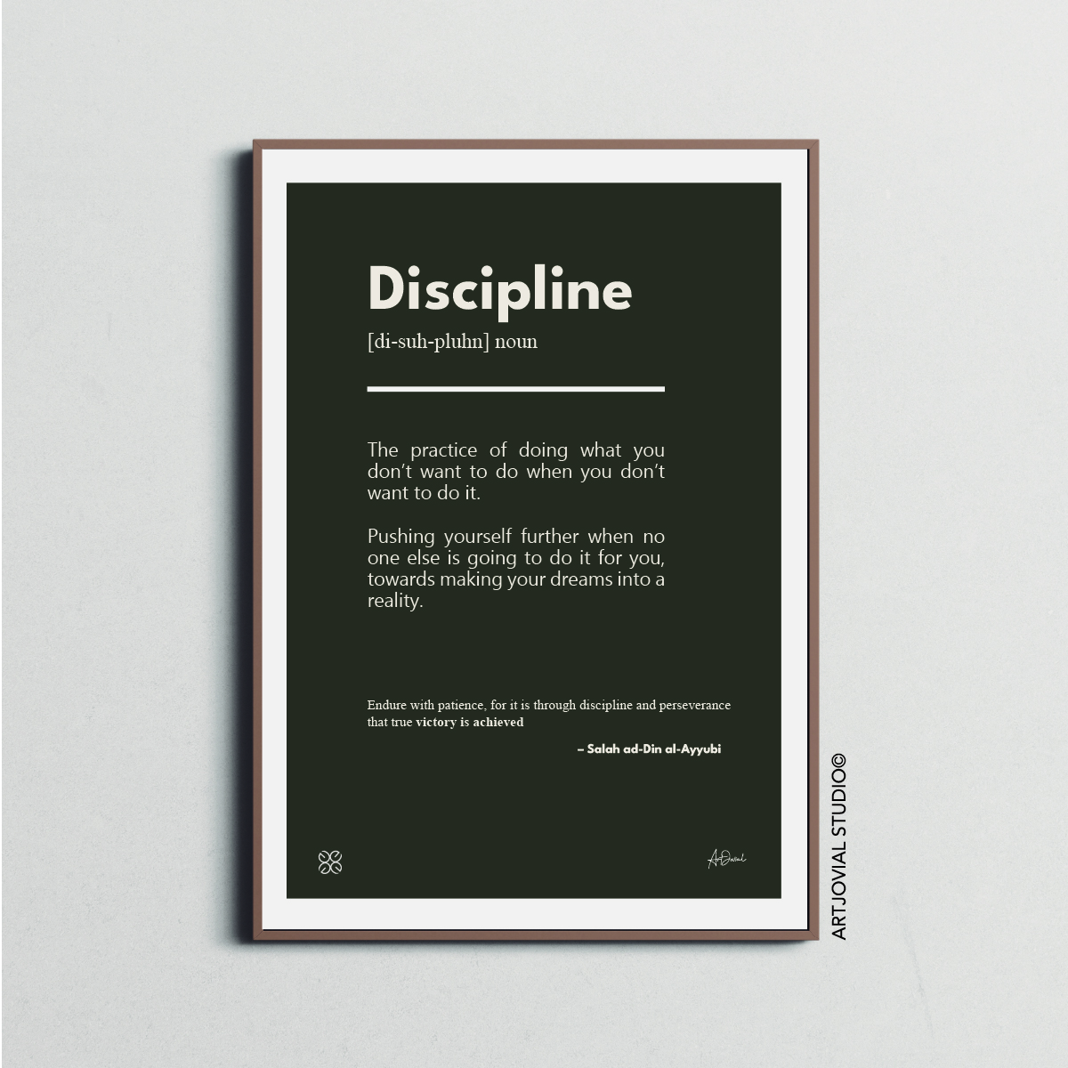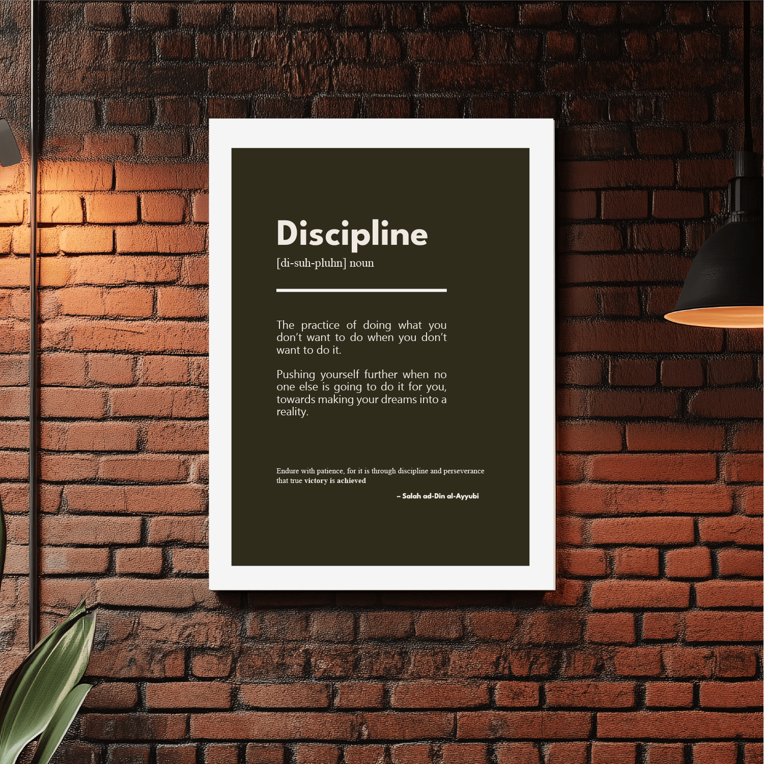 Apportez une touche de motivation à votre espace avec cette affiche inspirante sur la discipline. Son design minimaliste et sa citation puissante rappellent l’importance de la persévérance et de l’engagement dans la réalisation de ses objectifs. Idéale pour un bureau, une salle de sport ou un espace de travail, elle encourage au dépassement de soi et à la constance dans l’effort