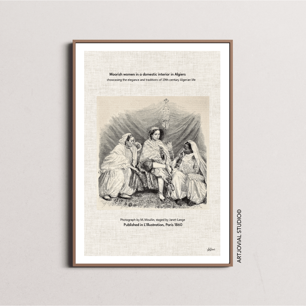 Un trésor visuel unique chez ArtjovialCombinez cette œuvre avec les autres de la même collection pour créer un effet galerie saisissant. Plongez dans une expérience visuelle unique avec cette série exclusive de tableaux illustrant l’Algérie des années 1800. Mêlant mode traditionnelle, architecture authentique, scènes de vie vibrantes et portraits du quotidien, chaque œuvre, dans un style vintage recherché, s’intègre harmonieusement pour offrir une immersion totale dans le patrimoine algérien. Disponible uniquement chez Artjovial en haute résolution.