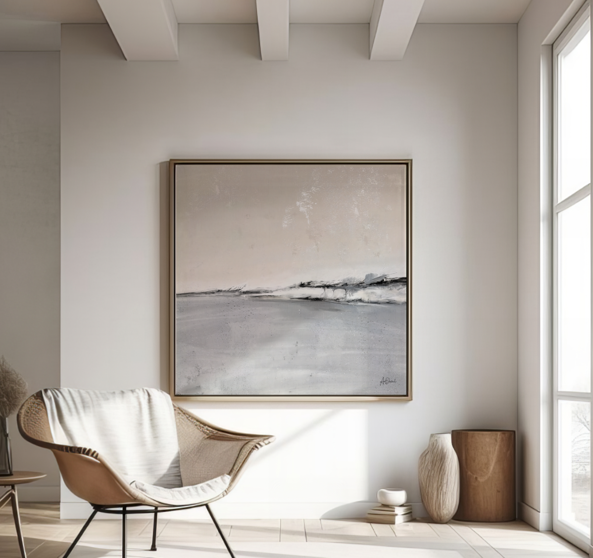 Un paysage abstrait où la douceur des teintes naturelles rencontre la force des contrastes. Entre ciel apaisant et textures profondes, cette œuvre évoque une sérénité intemporelle. Parfaite pour un intérieur raffiné, elle insuffle élégance et caractère à votre espace. Un must-have pour une décoration haut de gamme.