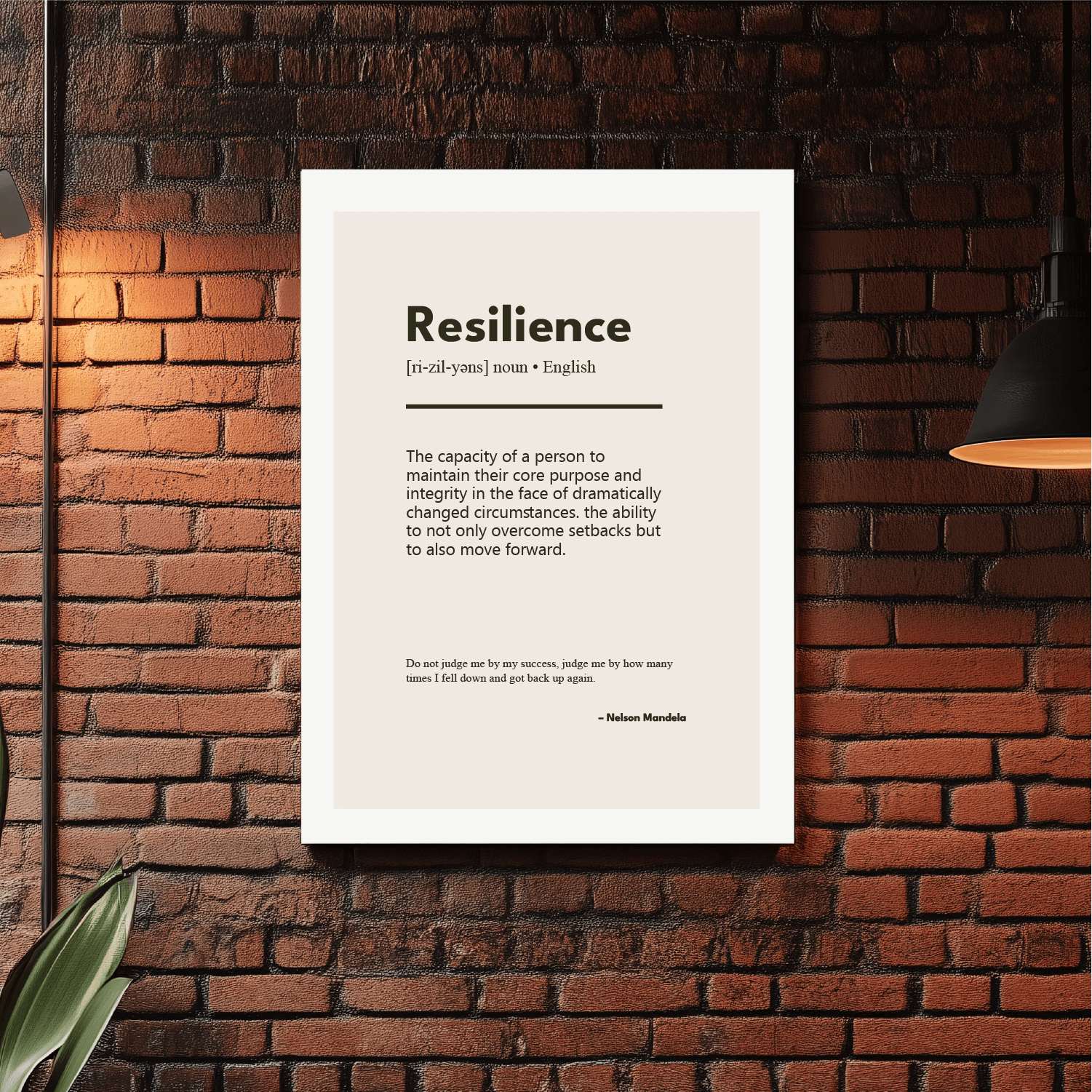 Affichez un message puissant avec cette affiche Résilience, idéale pour un bureau, un espace de coworking, une chambre ou un salon. Son design minimaliste et sa citation inspirante de Nelson Mandela rappellent l’importance de la persévérance et du dépassement de soi. Un élément de décoration motivant, parfait pour insuffler positive attitude et empowerment au quotidien